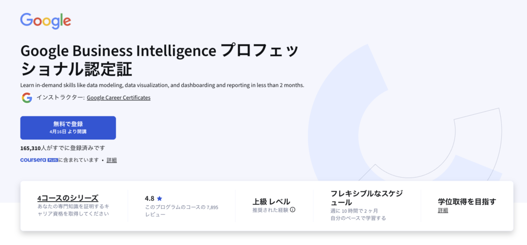 - Google BI認定はデータアナリストからBIアナリストへキャリアアップするための全3コースのプログラム